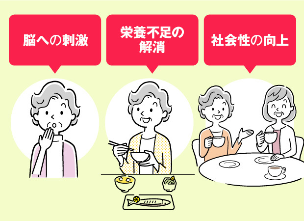 - 様々な物が食べられるようになるので、食事内容が改善され栄養が不足しない
